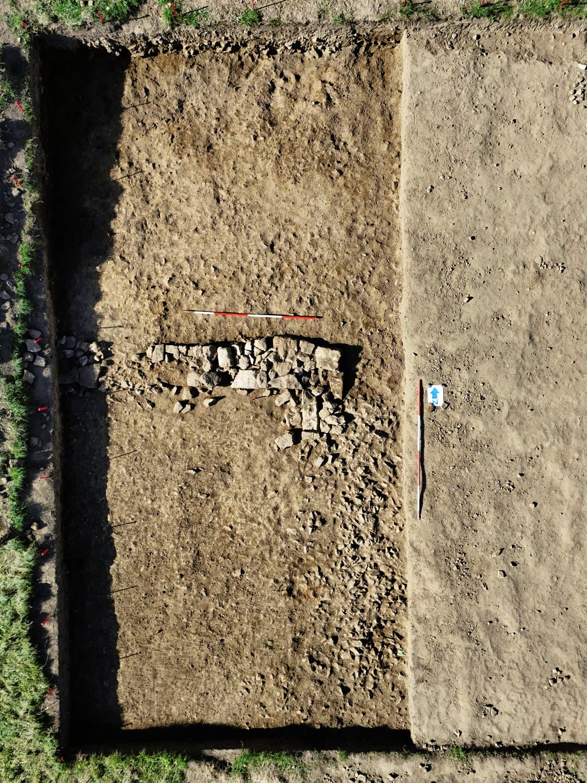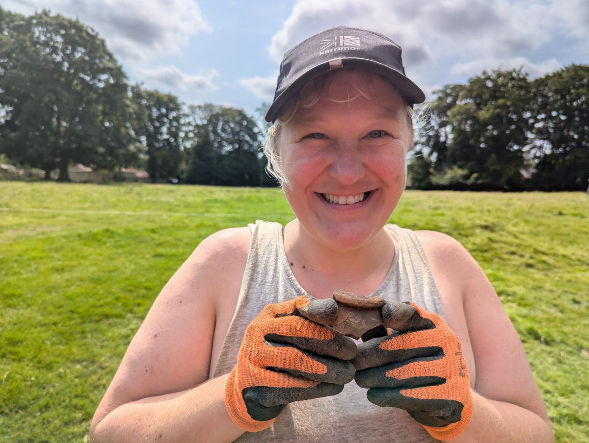 A large ditch and bank were also identified and a trench was placed inside it in July 2024. This uncovered large amounts of Iron Age and Roman pottery, dating from 75 BCE to 300 CE. In addition, large circular pits were also identified, suggesting that a Romano-British feature lies within this bank and ditch.